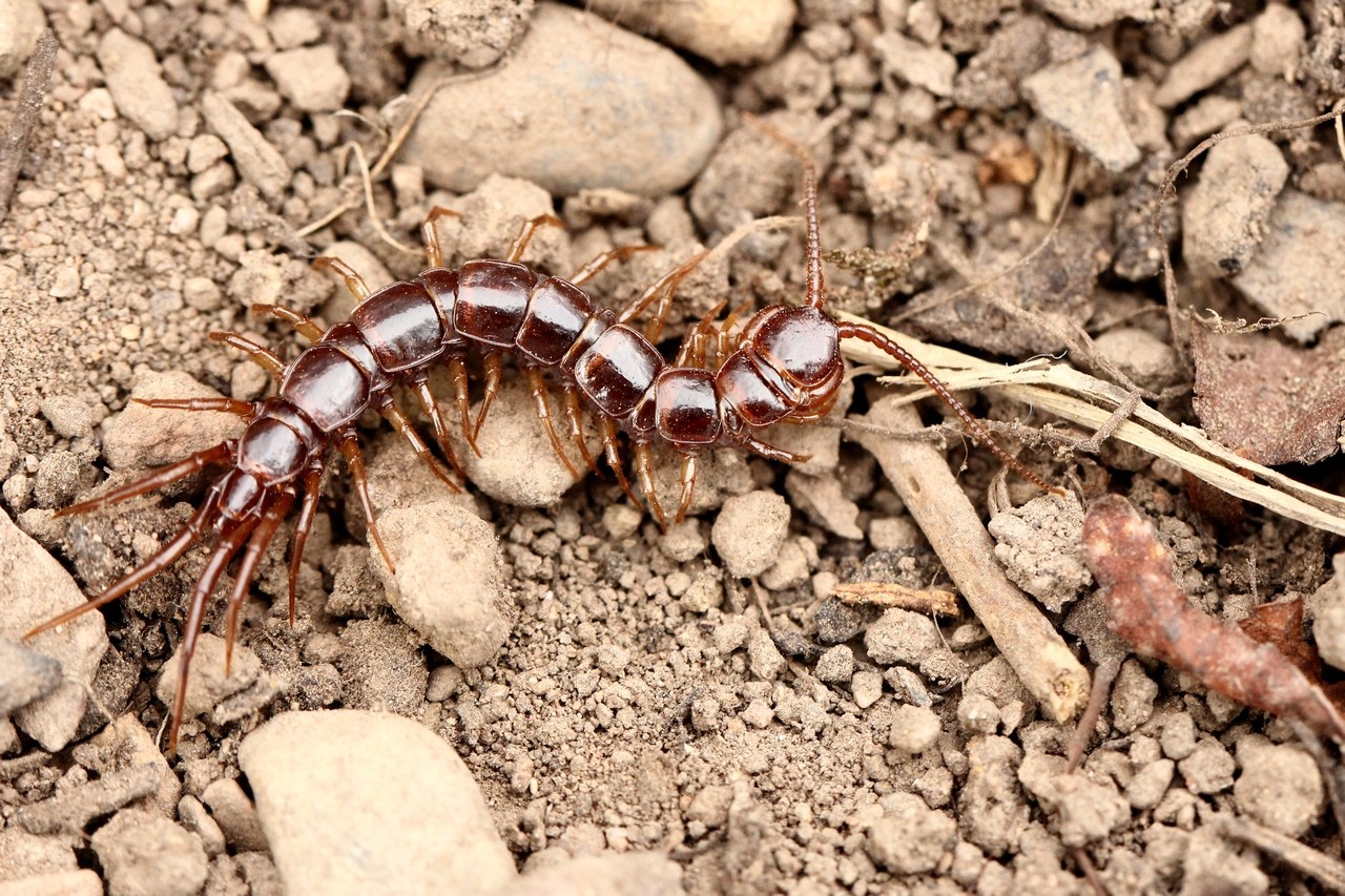 Ce sont des Arthropodes plats et allongés possédant une seule paire de pattes par segment (chilo = bord ; pod = pied). Ils sont carnivores, transperçant leur proie à l'aide de forcipules (1ère paire de pattes transformée en crochets vénimeux). Lorsqu'ils se déplacent, les pattes droites et gauches d'un même segment sont actionnées de manière indépendante. En France, 140 espèces environ.