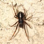 Fréquente les murs à l'abri de la pluie. Morsure douloureuse et conséquente. Famille des Theridiidae - 68190 Ungersheim (Ecomusée d'Alsace) - 16 juillet 2018